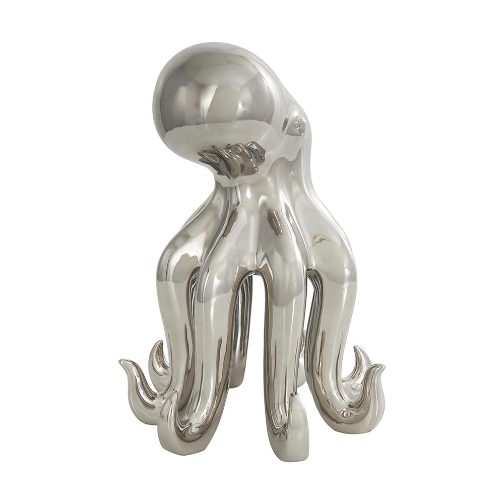 Gracias a sus tentáculos curvos y a su acabado galvanizado, la Escultura Pulpo genera movimiento y profundidad dentro de la composición decorativa. Su estética refinada permite combinarla fácilmente con tonos neutros, superficies naturales o elementos marinos, aportando carácter y un sutil aire oceánico al ambiente. Es una pieza que funciona tanto como escultura protagonista como complemento dentro de una colección decorativa.