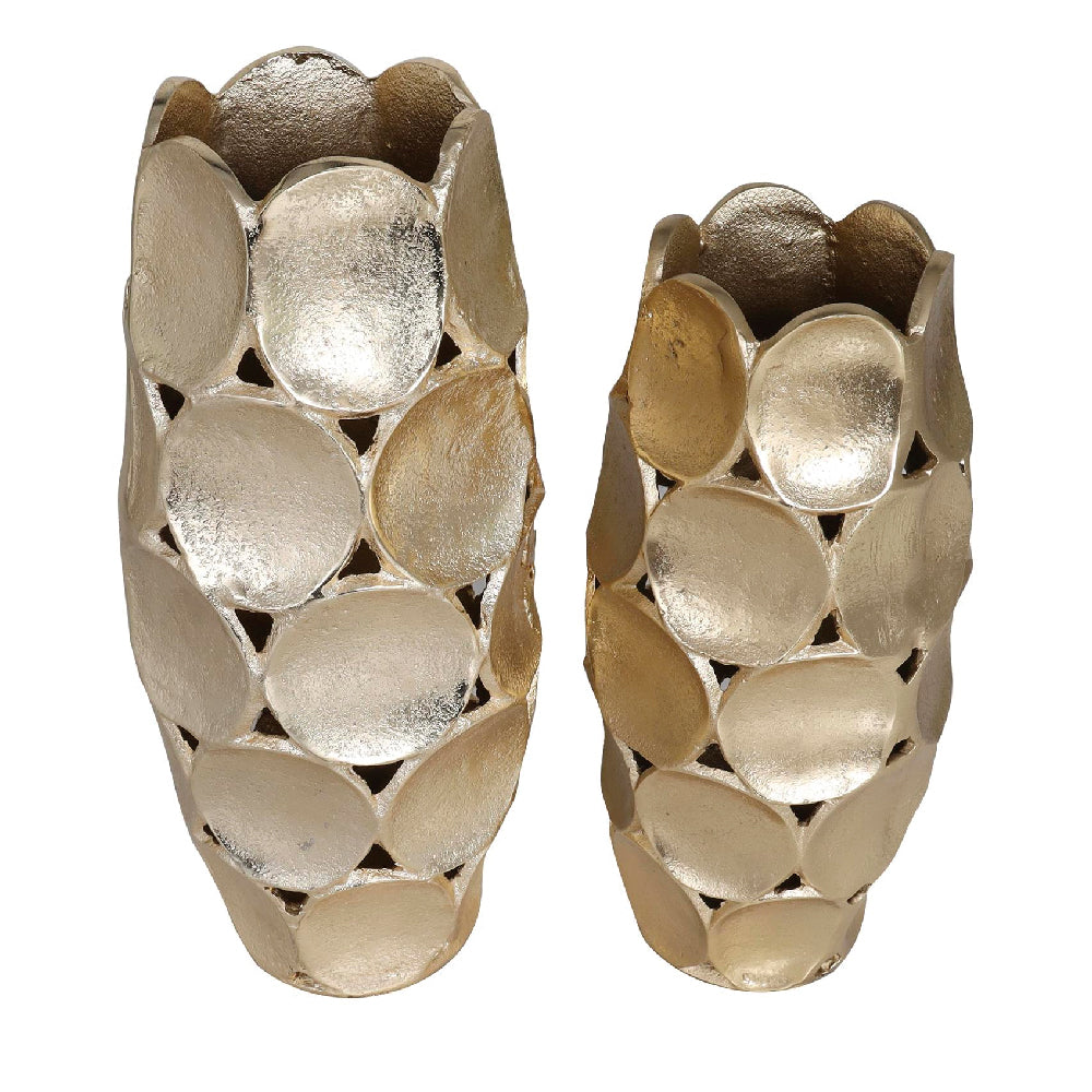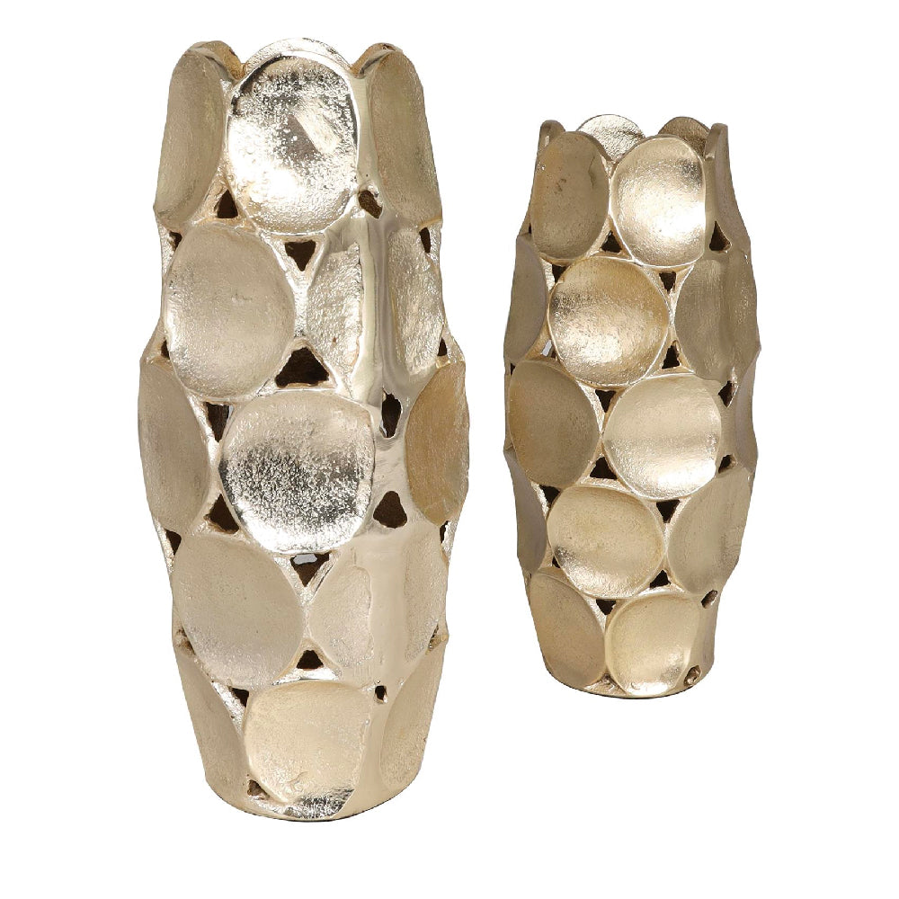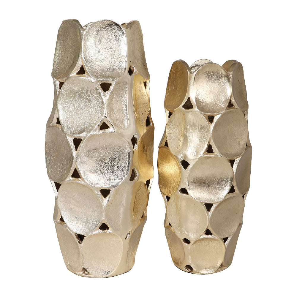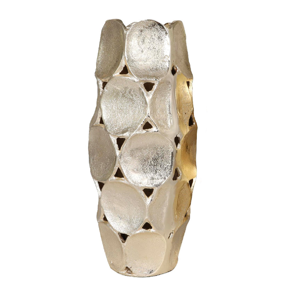 Cada Jarrón Platos destaca por su forma artística y su acabado pulido, que permite reflejar la luz y añadir profundidad al espacio. Perfecto para decorar con flores secas o simplemente como acentos metálicos.
