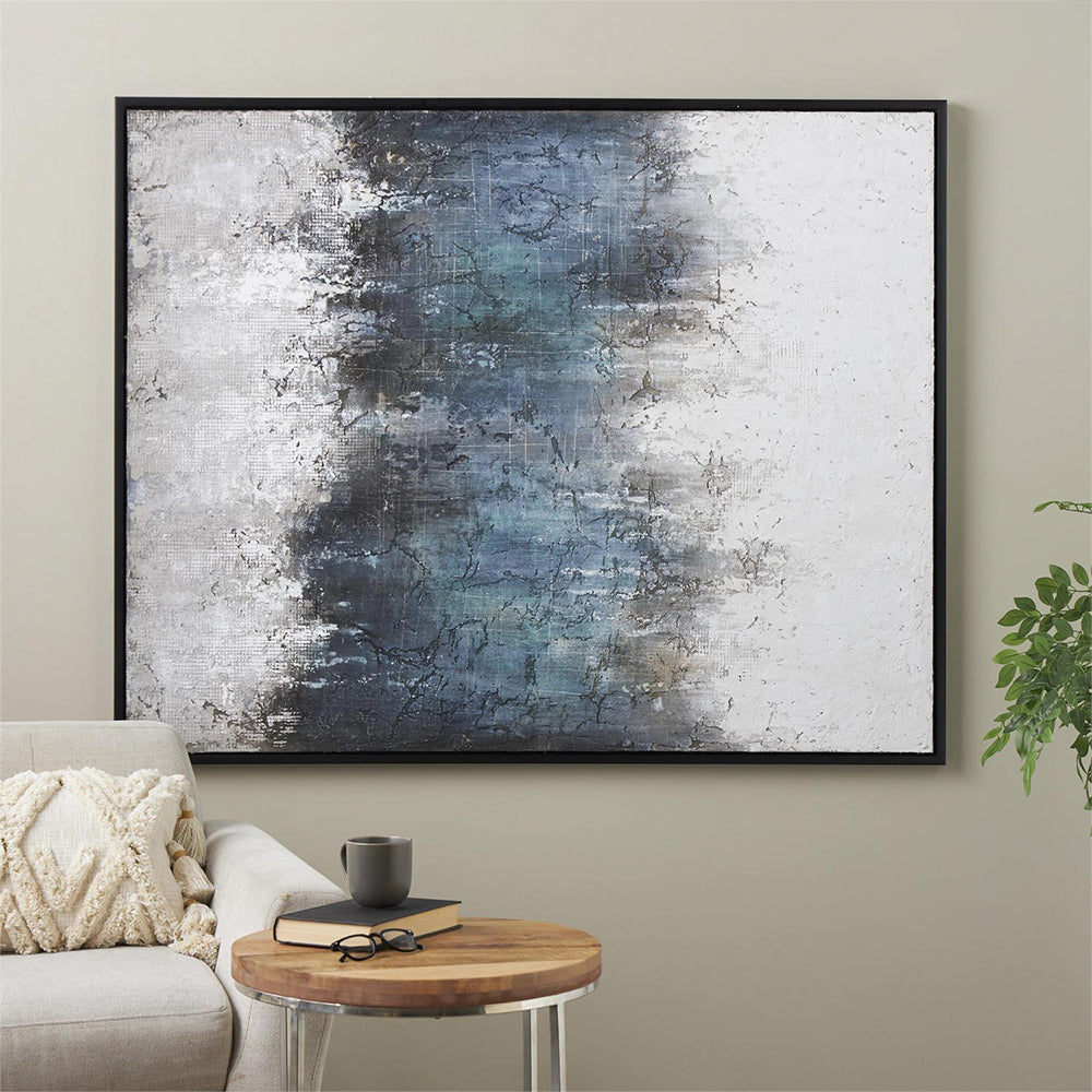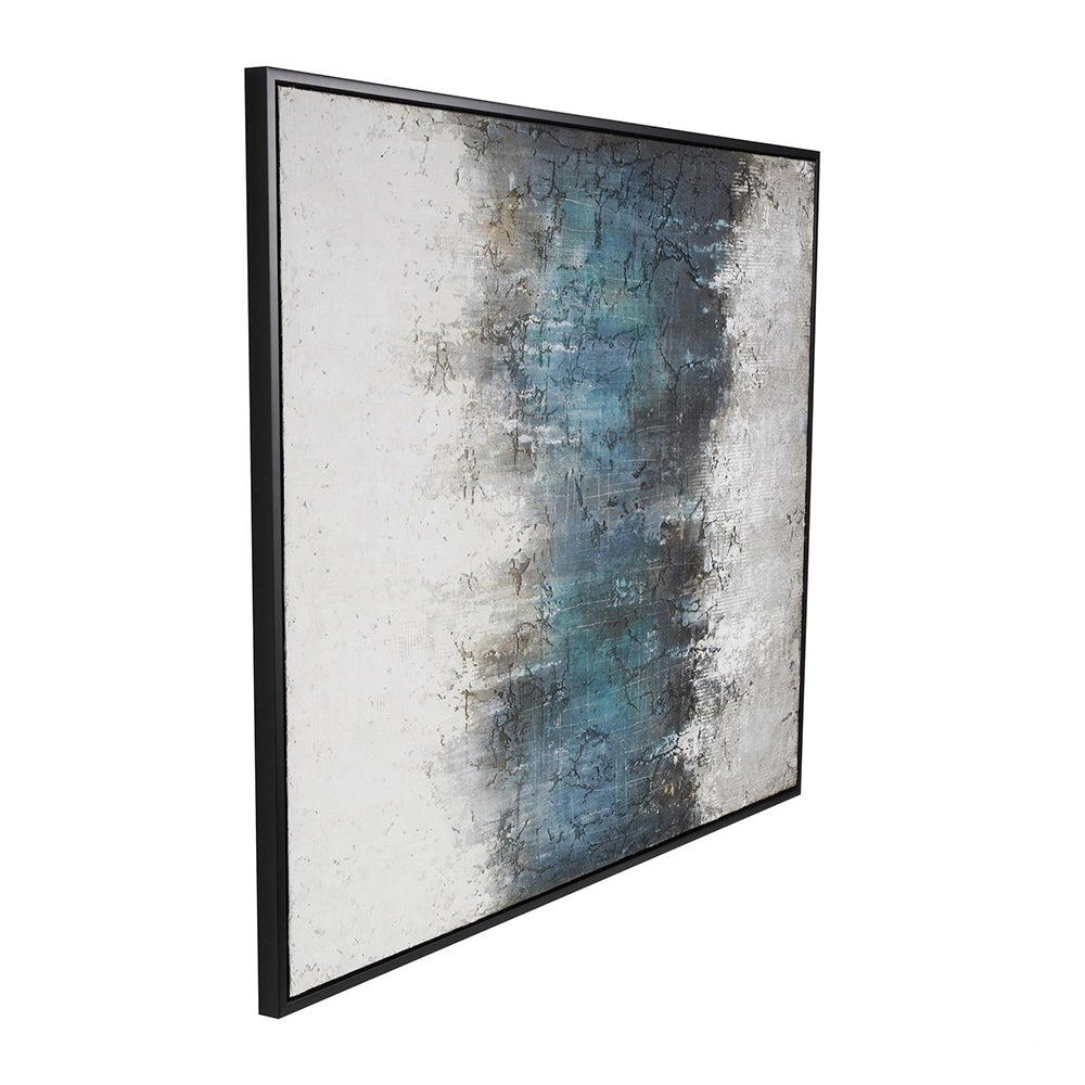 Inspirado en la serenidad de los tonos metálicos y el equilibrio visual del arte moderno, este Cuadro Celeste enmarcado es una declaración de estilo minimalista con un toque escultórico. Sus matices plateados y azules, aplicados con un acabado desgastado, evocan movimiento y profundidad, creando un punto focal sofisticado que se integra con facilidad en interiores contemporáneos o espacios neutros.