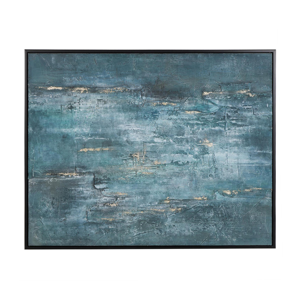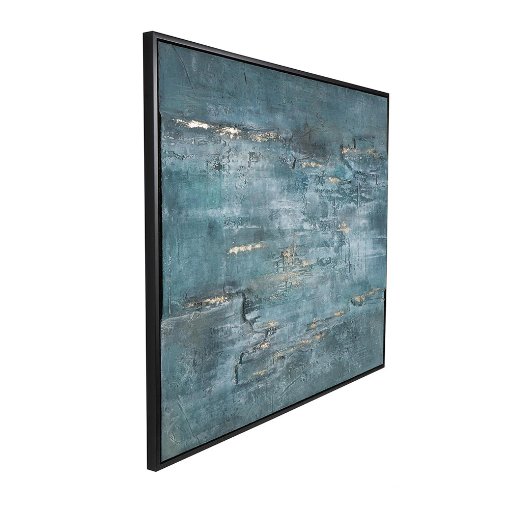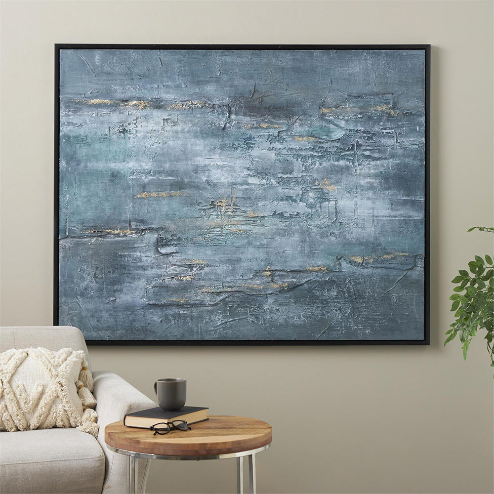 El marco negro mate y los detalles metálicos en relieve refuerzan su aire minimalista, mientras que los materiales aseguran resistencia y una composición equilibrada. El Cuadro Índigo es ideal para salones, comedores o estudios donde la decoración busca un toque de profundidad y elegancia sutil.