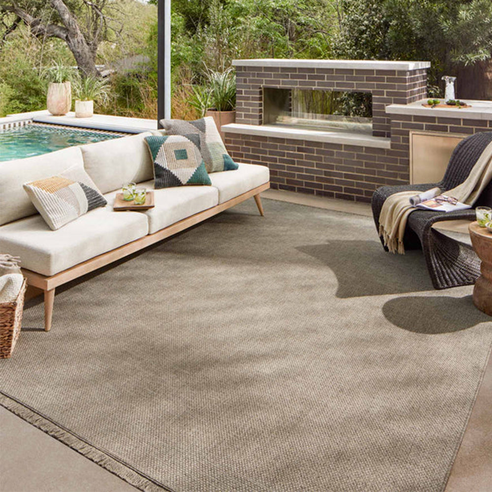 Gracias a su confección 100% en polipropileno tejido a máquina, este Tapete Dawn es resistente al agua, al moho y al alto tránsito, lo que la hace ideal para terrazas, comedores o salas familiares. El detalle de flecos cortos en los bordes añade un toque artesanal y sofisticado. Fácil de limpiar, basta con enjuagarla con agua para mantenerla siempre impecable.