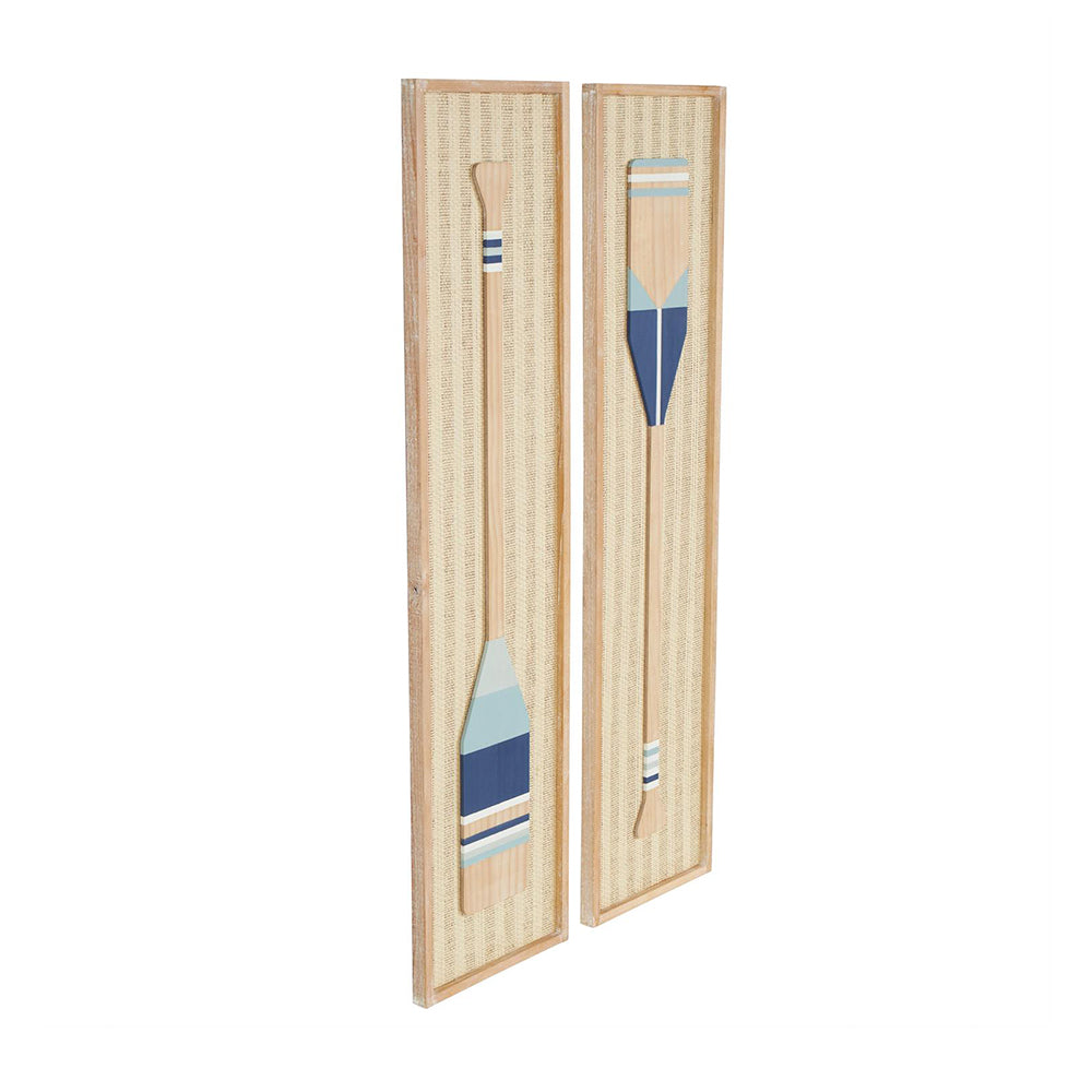 El contraste entre la madera clara y el respaldo de papel tejido crea una composición cálida y artesanal, con un acabado texturizado que remite al encanto del yute y las fibras naturales. Esta Decoración de Pared Remo no solo decora, sino que también aporta sensación de ligereza y movimiento, como una brisa marina dentro del hogar. Ideal para combinar con muebles de madera clara, cerámicas blancas y acentos dorados.
