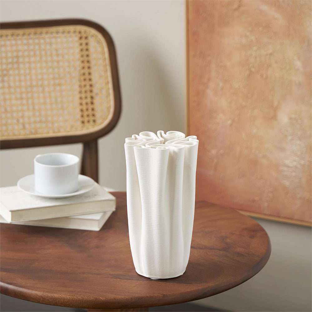 El Jarrón Abstracto Blanco es una pieza contemporánea que fusiona diseño escultórico y funcionalidad estética, convirtiéndose en un acento imprescindible para la decoración moderna.