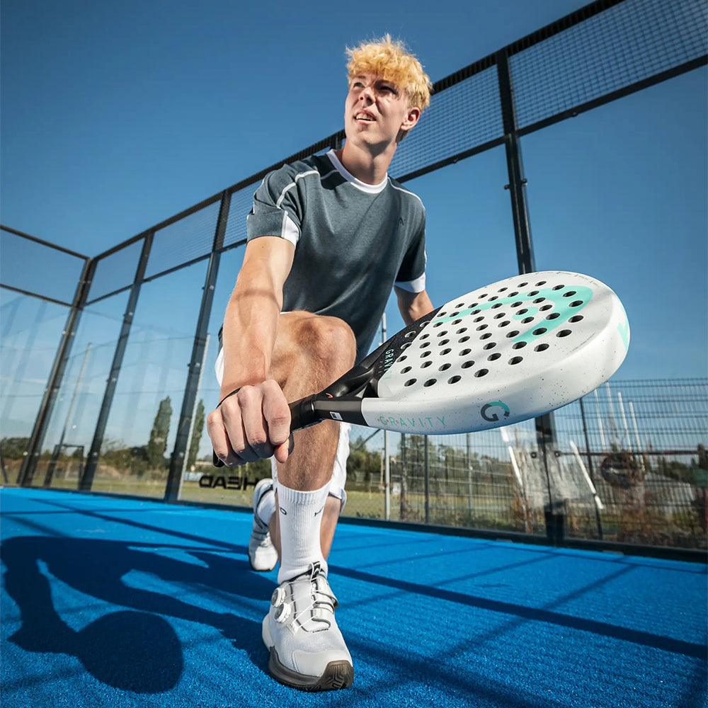 La Raqueta Gravity Pro combina respuesta firme, excelente tacto y capacidad de generar spin con mayor facilidad. Su estructura optimizada permite golpes controlados desde el fondo de la pista y transiciones efectivas hacia el ataque, ofreciendo una experiencia equilibrada entre potencia técnica y sensibilidad en el impacto.