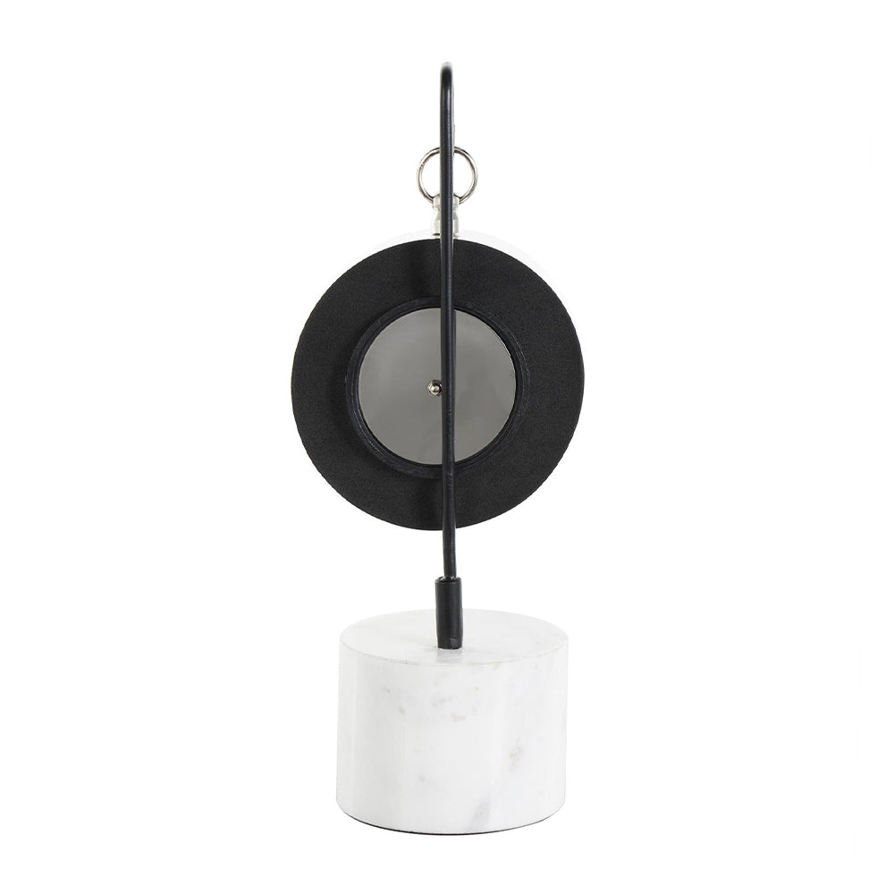 El diseño contemporáneo de este Reloj Suspendido destaca por su forma redonda suspendida, combinando funcionalidad y arte en un solo objeto. Su construcción sólida y equilibrada garantiza estabilidad, mientras que los detalles de contraste en el soporte elevan el atractivo visual de cualquier espacio, aportando un toque moderno y refinado a la decoración.