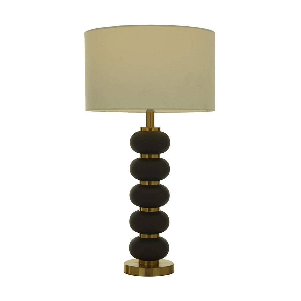 La Lámpara Capas Negra es una pieza decorativa que aporta un estilo moderno y sofisticado a cualquier interior. Su base compuesta por esferas en acabado negro mate con detalles metálicos dorados crea un contraste elegante y contemporáneo, mientras que la pantalla cilíndrica de lino blanco filtra la luz suavemente para lograr ambientes cálidos y acogedores. Perfecta para realzar salas, recámaras o espacios de lectura, se convierte en un accesorio funcional y decorativo al mismo tiempo.