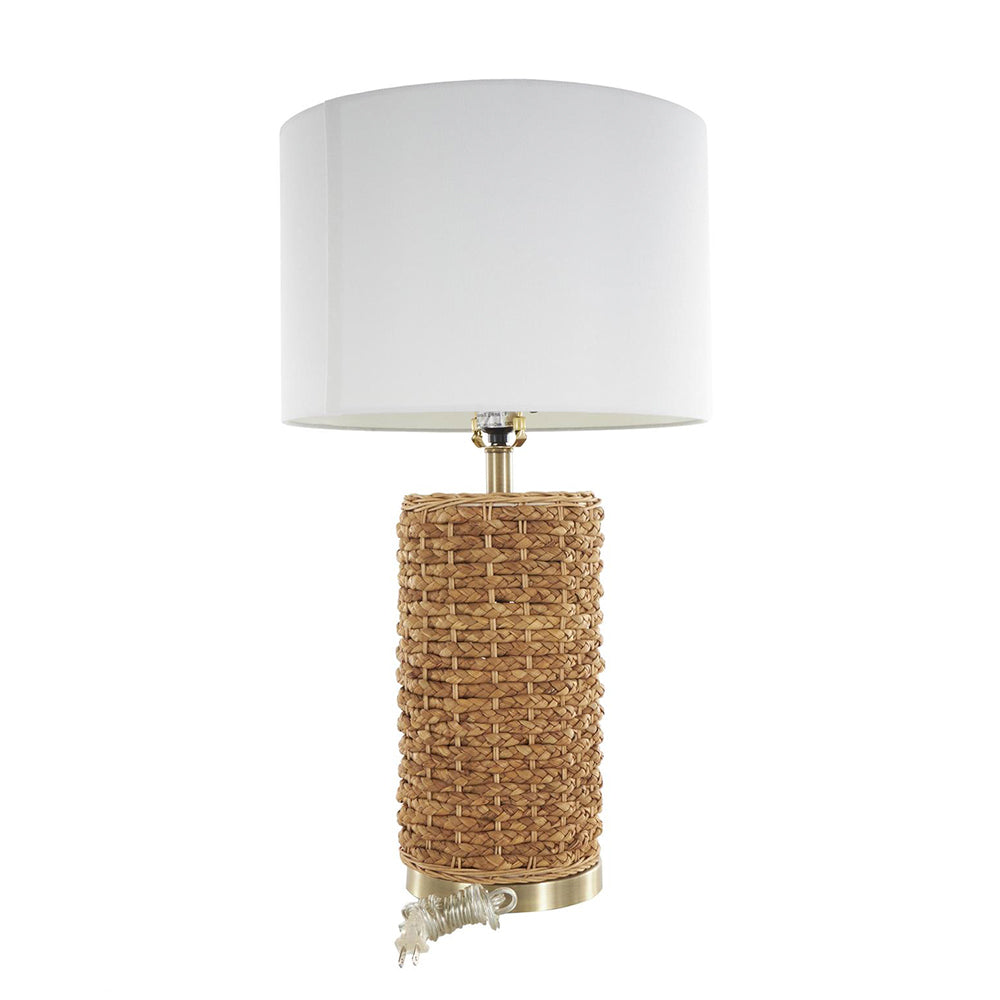 Elaborada con una combinación de ratán, hierro, plástico y lino, esta Lámpara Boho ofrece durabilidad y sostenibilidad sin sacrificar el estilo. Los detalles dorados en el trenzado y la forma cilíndrica del cuerpo aportan interés visual, mientras que la pantalla en forma de tambor difunde la luz de manera cálida y envolvente. Una pieza decorativa que combina practicidad y estética boho, ideal para interiores que buscan frescura y personalidad.