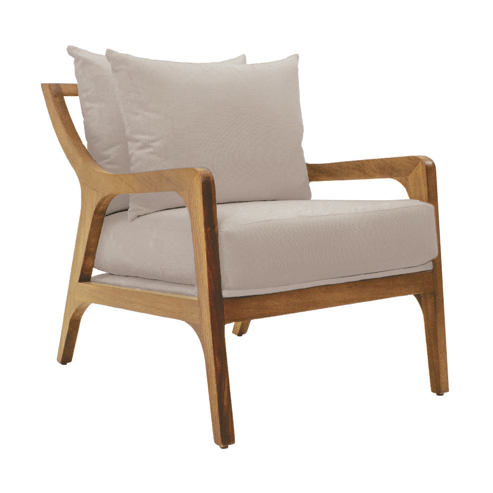 Con su silueta escultórica y materiales naturales, el Sillón Sky se convierte en el protagonista absoluto de cualquier espacio. Su estructura de madera en acabado natural combina calidez y carácter, mientras que los cojines añaden textura suave añaden un contraste fresco y envolvente.