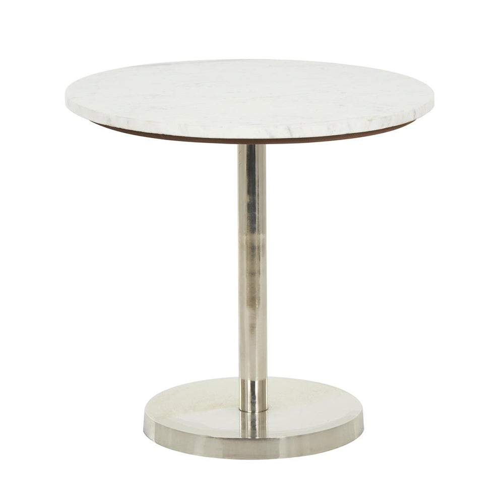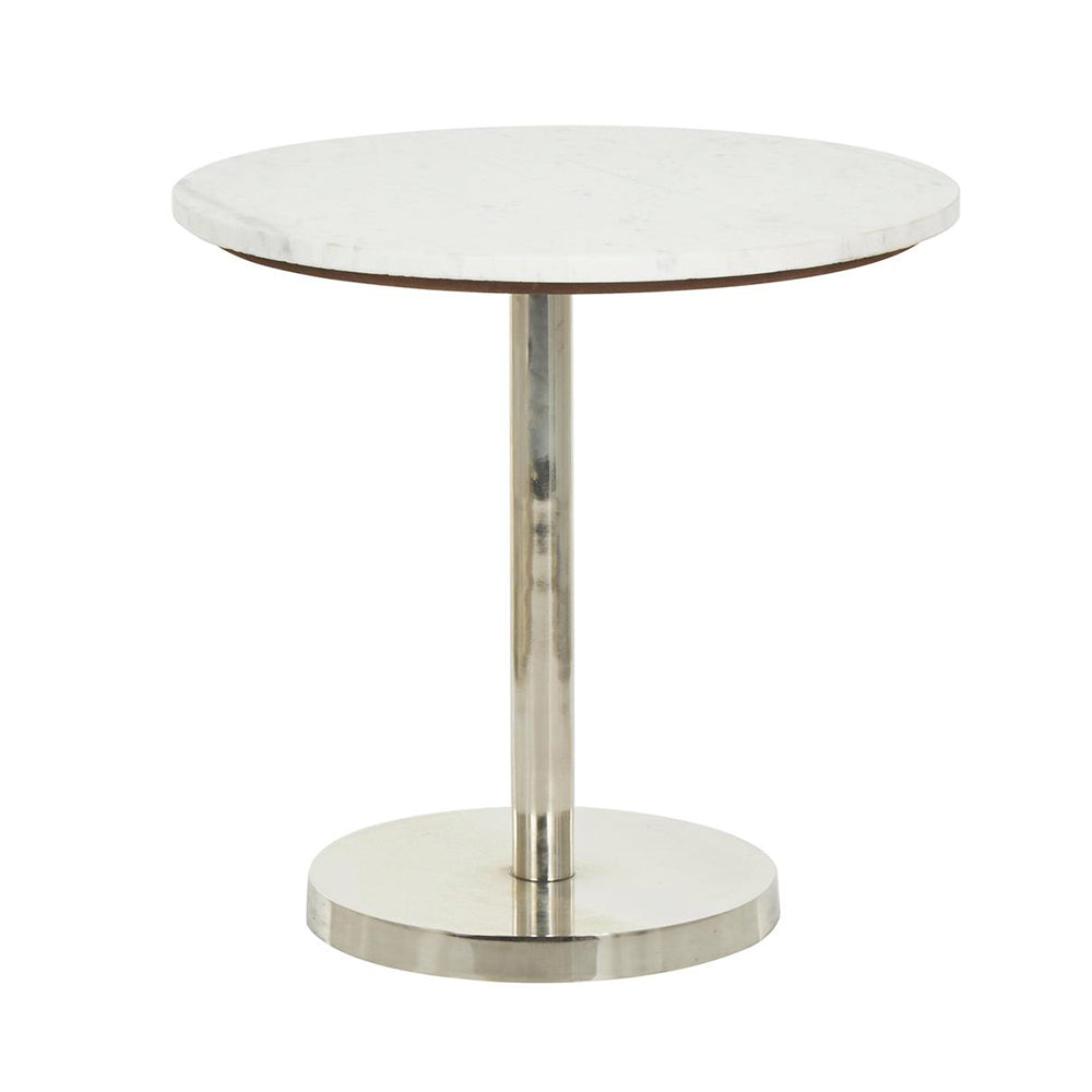 La Mesa Lateral Mónaco combina lujo contemporáneo y equilibrio visual en una pieza sofisticada y versátil. Su estructura metálica en acabado plateado mate aporta un brillo sutil y moderno, mientras que la superficie de mármol blanco agrega textura y elegancia, creando una composición ideal para realzar salas, recámaras o rincones de lectura con un toque refinado.