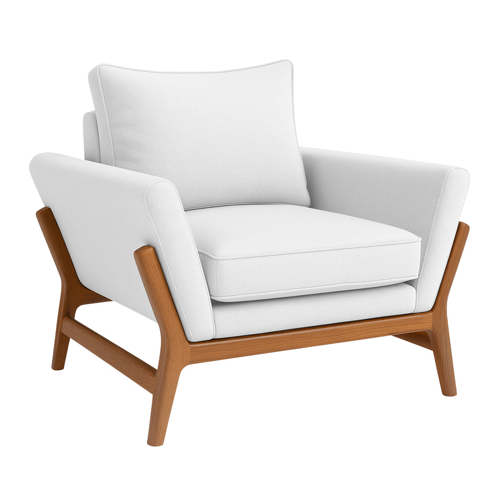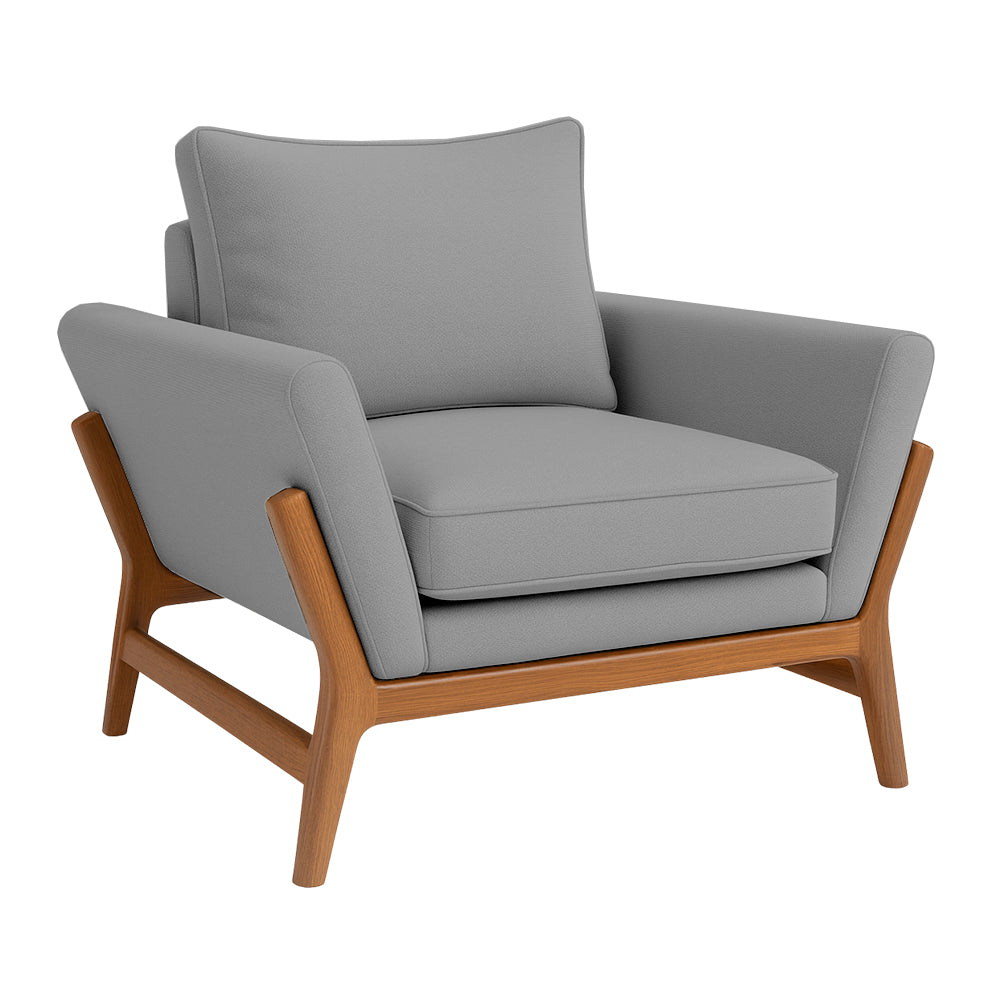 Sillón Kala, sillón cómodo, sillón de madera de rosa morada, minimalista, suave, acolchonado.