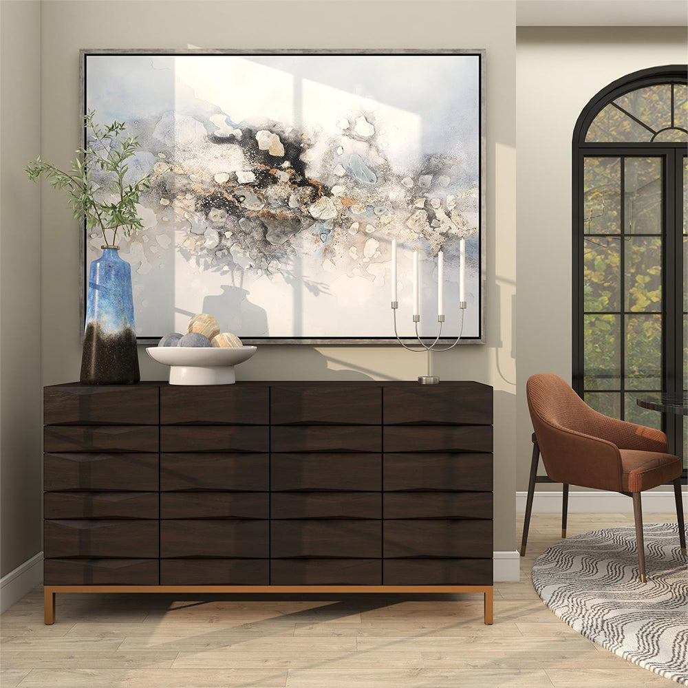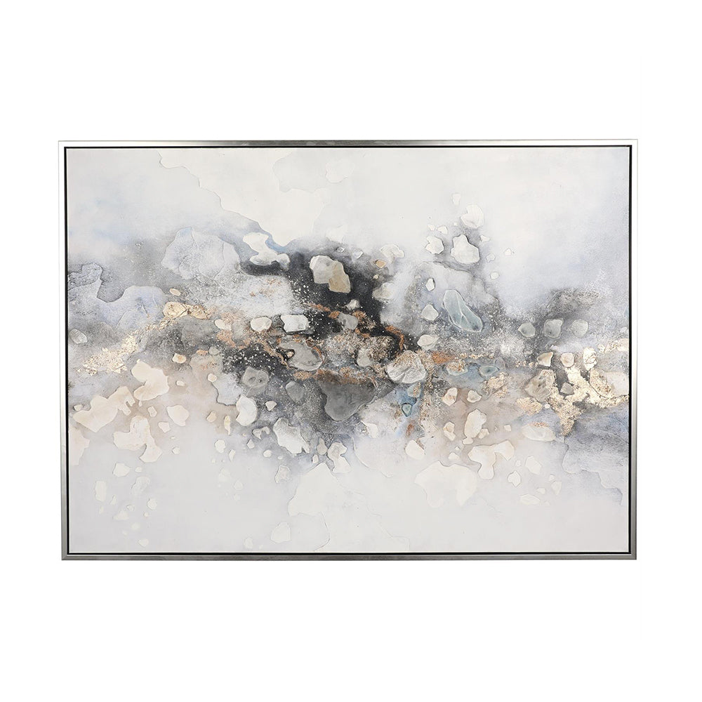 Su acabado texturizado y el marco rectangular en tono plateado complementan perfectamente la composición, reforzando su carácter moderno y atemporal. Este Cuadro Manchas se adapta con facilidad a estilos contemporáneos, minimalistas y atractivos, funcionando como un punto focal que evoca movimiento, fluidez y patrones orgánicos con un aire vibrante y artístico.