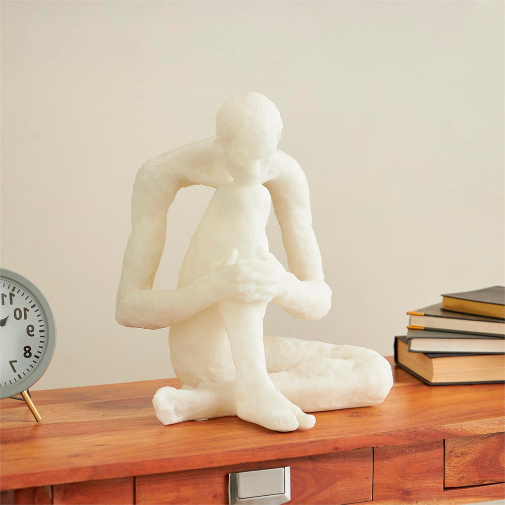 Impresiona en cualquier espacio con la Escultura Persona Pensante de estilo minimalista. Hecha de polipiedra duradera, esta estatua blanca captura la esencia de la expresión humana con detalles finos y una figura pensativa, agregando un toque elegante y audaz a tu decoración. Su acabado mate con un brillo sutil aporta sofisticación a tu hogar u oficina.