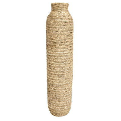 Este Jarrón cilindro azul simple y práctico con abertura en forma de cuello de botella con cavidad profunda, ideal para arreglos florales de tallo largo en un acabado azul transparente.