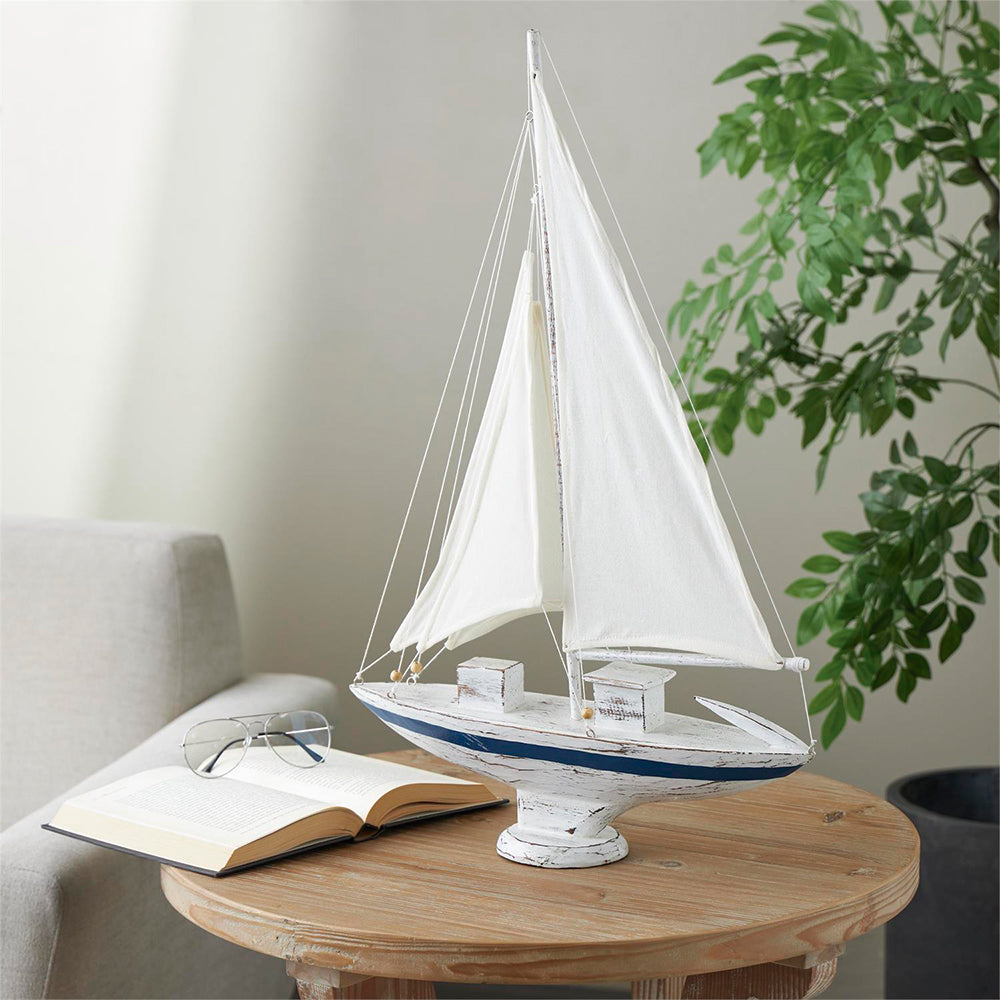 El Velero Atlántico es una pieza inspirada en la serenidad del mar y el encanto de la vida náutica, perfecta para añadir un toque costero y vintage a la decoración del hogar. Su acabado blanco envejecido, combinado con una franja azul oscuro y detalles en cuentas marrón, aporta autenticidad y carácter artesanal, evocando la frescura del océano en cada rincón.